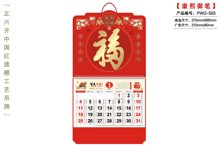 商品描述:產(chǎn)名:2026掛歷制作,規(guī)格:50X73,系列:對(duì)開皺油UV銅版卡掛歷,工期:通版3-7天,專版10-15天