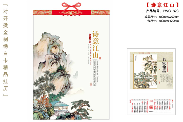 商品描述:產(chǎn)名:山水掛歷,規(guī)格:39X54,系列:中四開鏡光銅版紙掛歷,工期:通版3-7天,專版10-15天