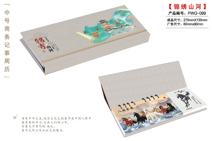 商品描述:產(chǎn)名:臺歷印刷廠,規(guī)格:14X22,系列:抽取式臺歷相框架,工期:通版3-7天,專版10-15天